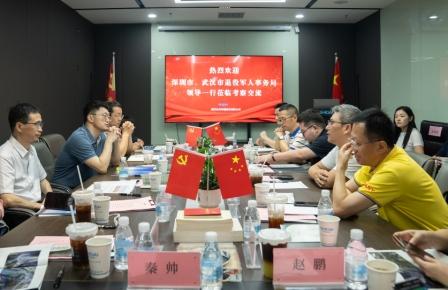随后,双方就退役军人在科技型企业中的就业安置、职业发展以及如何进一步促进退役军人事务工作与科技创新企业深度融合等话题展开了深入探讨。双方希望以此次考察为契机,加强深圳与武汉两地军创企业的互动、交流与合作,进一步探索在退役军人就业创业扶持方面新路径、新举措,为退役军人提供更广阔的就业创业空间。